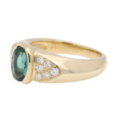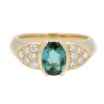 Vintage Oval Cut Green Tourmaline and Diamond Ring