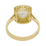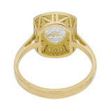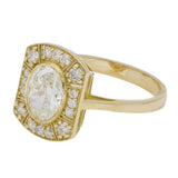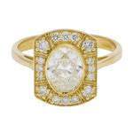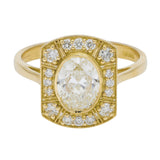 Diamonds: Centre oval diamond GIA 1.20ct K/VS2, surrounded by 0.35ct round brilliant diamonds estimated I-J/VS2/Si1