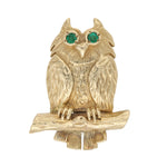 Vintage Owl Brooch in 9K Yellow Gold with Emerald Eyes