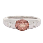 Peach Sapphire & Diamond Three-Stone Ring Set In Platinum