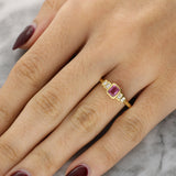 Crafted in 18K yellow gold, this ring is deal as a unique engagement ring or a colourful addition to any fine jewellery collection.
