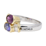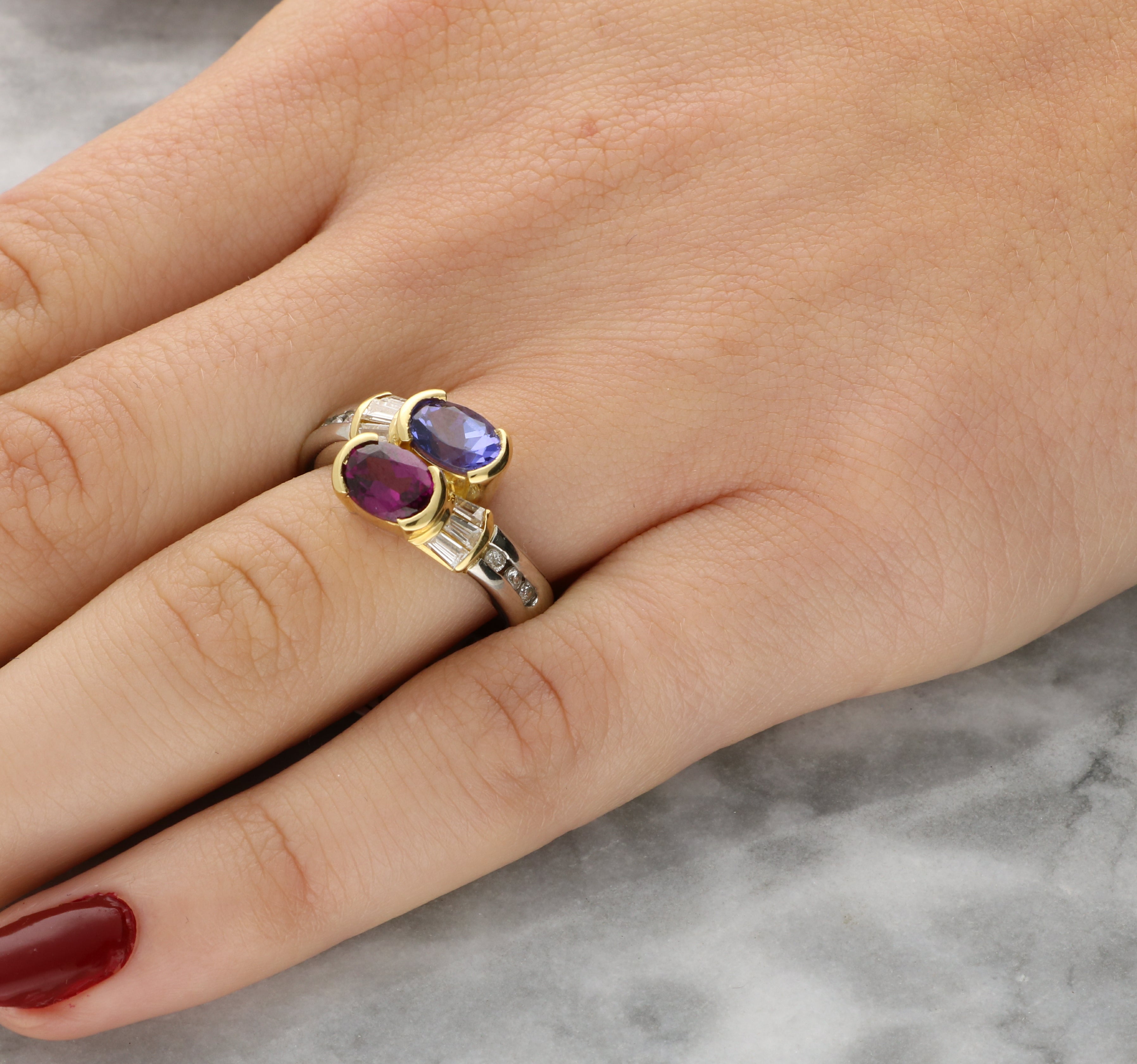 Vintage Pink Tourmaline and Tanzanite Diamond Crossover Ring
