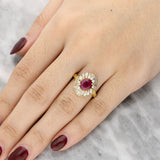 Vintage Ruby and Diamond Cluster Ring in 18K Yellow Gold