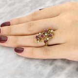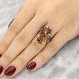 Vintage Ruby and Diamond Freeform Ring Set In 14ct Yellow Gold