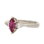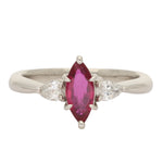 Marquise-Cut Ruby and Diamond Three-Stone Ring Set in Platinum