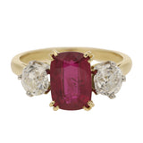 Vintage Ruby and Old Cut Diamond Three Stone Ring