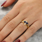 Vintage sapphire and baguette cut diamond ring set in 18ct yellow gold
