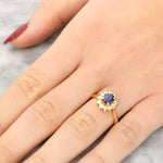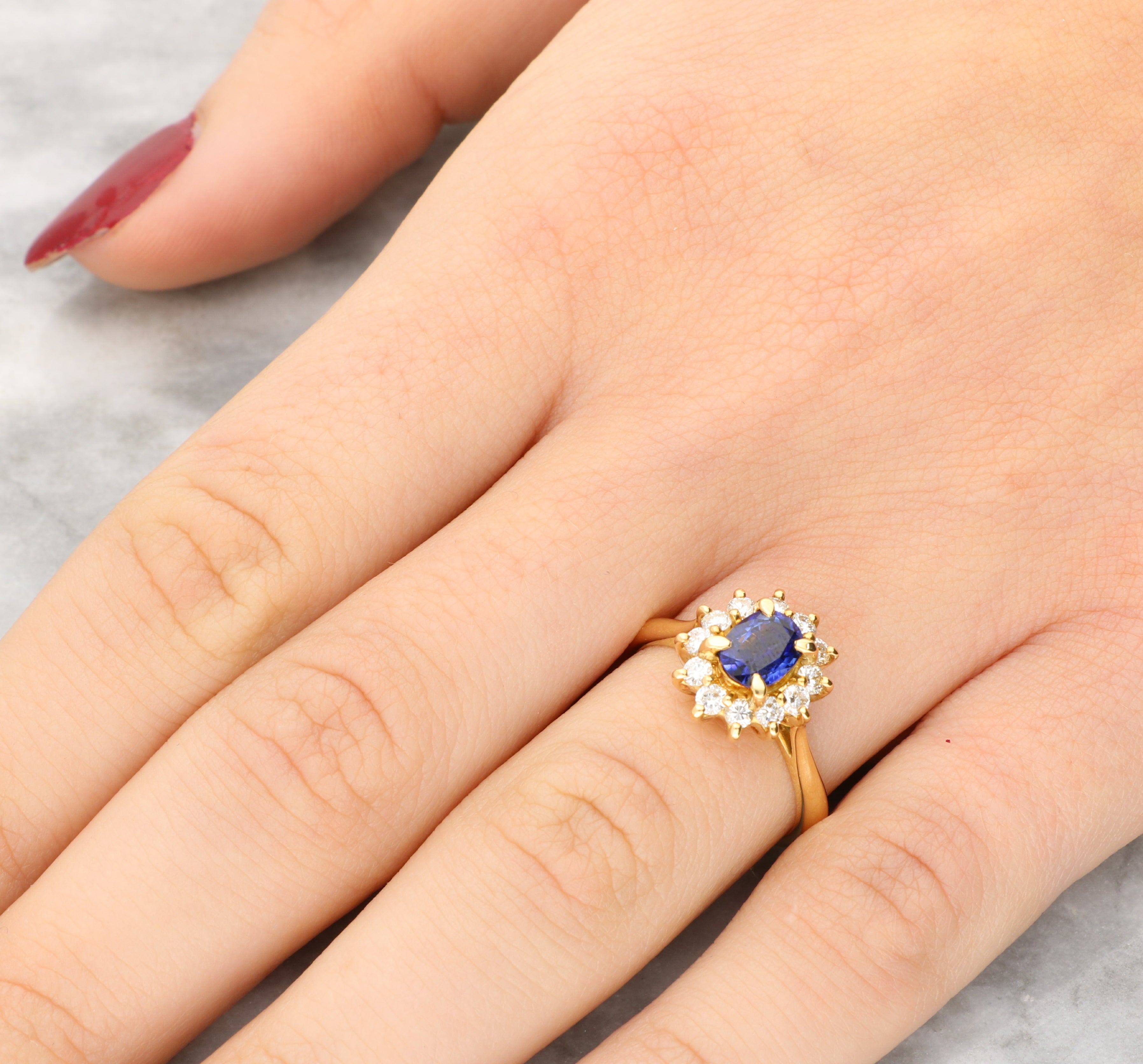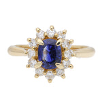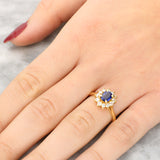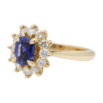 A beautiful vintage blue sapphire and diamond cluster ring set in 18ct yellow gold.