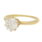 A vintage claw-set round brilliant diamond solitaire ring in yellow gold.