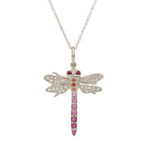 Ruby and Diamond Platinum Insect Dragonfly Pendant