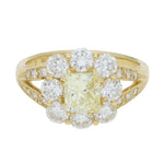 Vintage Style Fancy Yellow Radiant Cut Diamond Cluster Ring