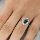 Vintage Teal Sapphire and Diamond Cluster Ring